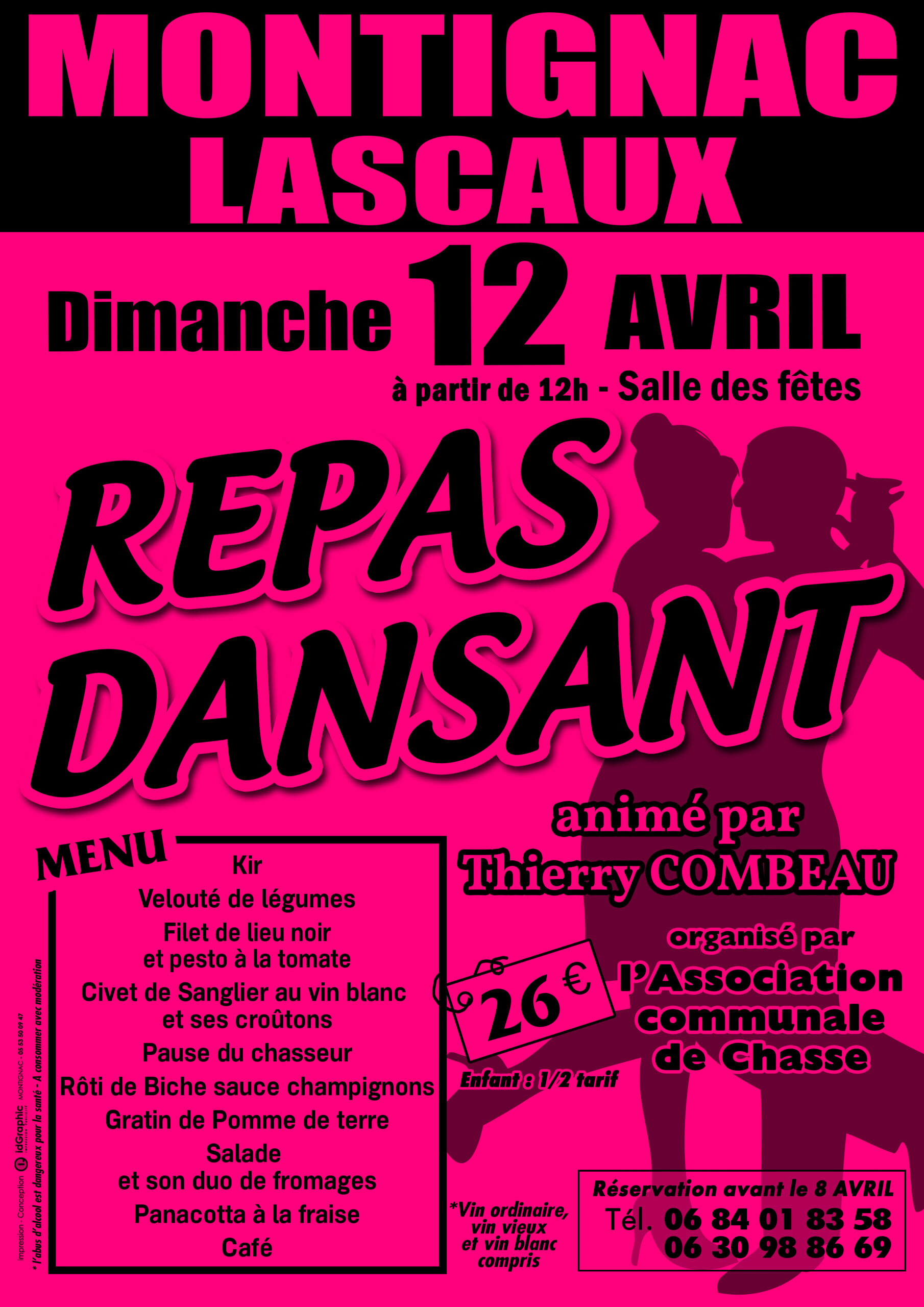 Organisé par l'association de la chasse "la Brande Montignacoise" - réservation 06.84.01.83.58 / 06.30.98.86.69